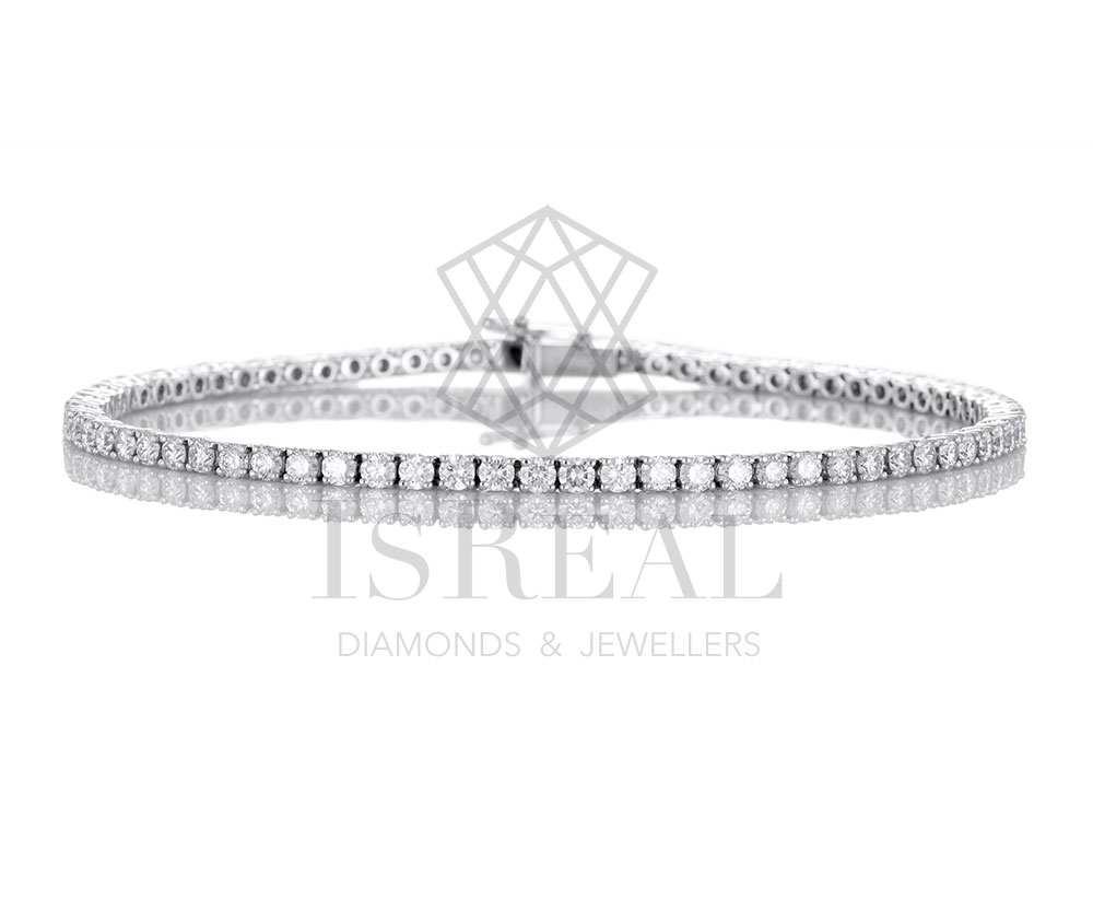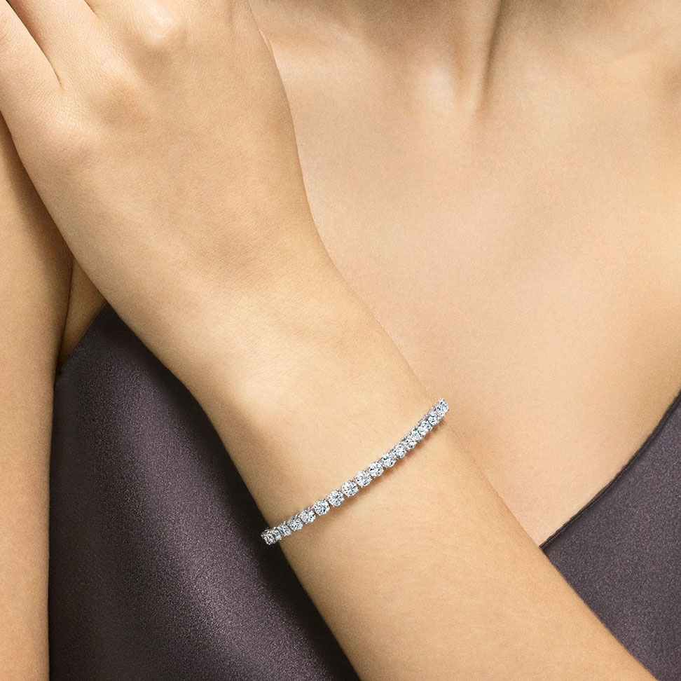 0.30 克拉爪镶圆形明亮型车工钻石在 18K 白金手链上熠熠生辉。