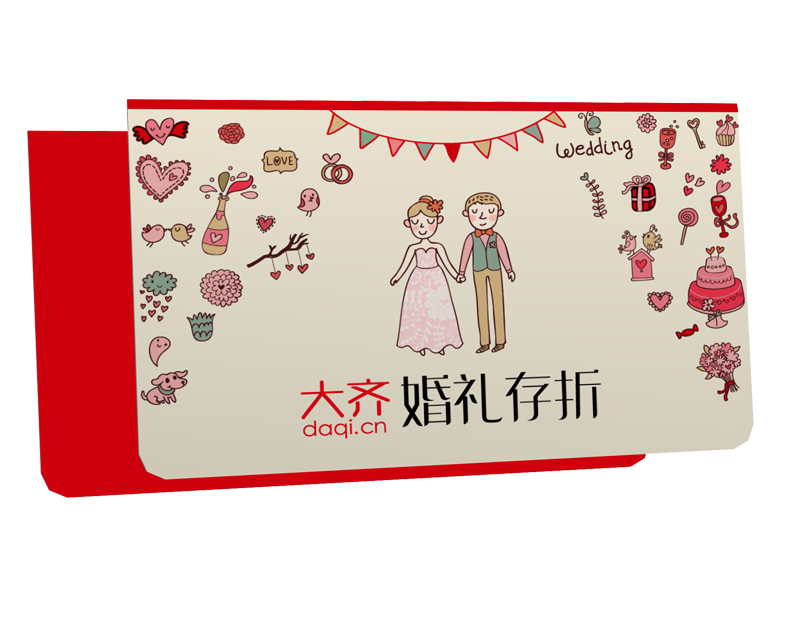 大齐婚礼存折是大齐网发行的积分兑换手册,新人在结婚过程中任意环节使用大齐网服务,均可获得相对应的钻石分,总共获得的钻石分总数可在大齐网自营的IsReal钻石店铺兑换相应分数的钻石。