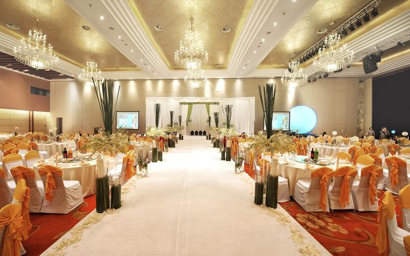 酒店建筑面积5.80万平方米,主楼26层,裙楼5层。位于二层的国际厅为2200平米无柱型多功能厅,可根据需要分隔成两个厅。7吨位车载电梯、同声传译等先进设施,可同时容纳2200人会议,是举办商企盛会、婚宴、聚会活动的最佳选择。一层的长江厅、黄山厅、淮河厅等风格迥异的多功能会议厅,均配备先进的高科技影音设备。可游刃有余地接待各类会议,灵活满足各种类型会议及宴会。