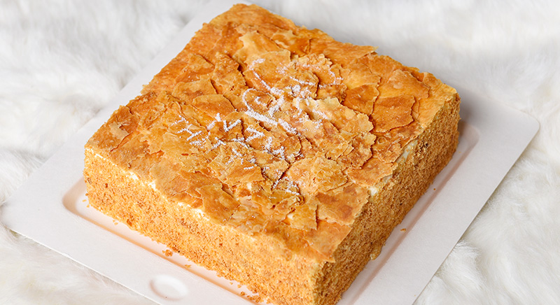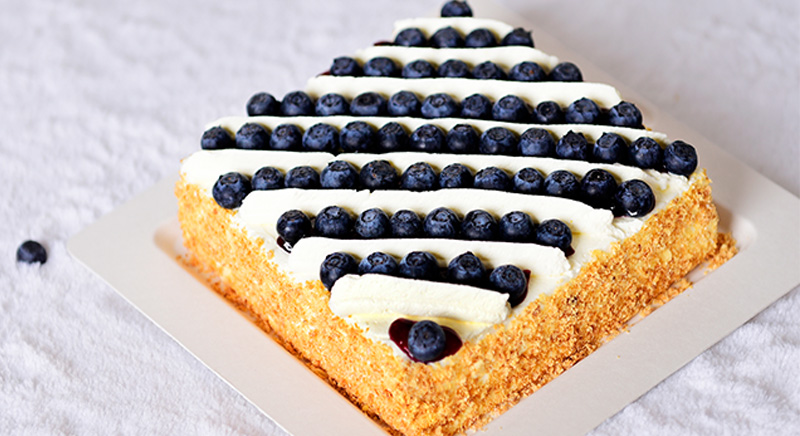 千层酥、乳脂奶油(法国)、新鲜蓝莓(美国)、自制蓝莓芝士酱、轻乳坯