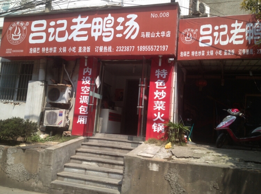 暂无介绍 吕记老鸭汤 地址:马鞍山市大华广场东面小巷008号 电话:2323877 周围可乘坐公交: 2路、6路、28路、109路、127路、129路