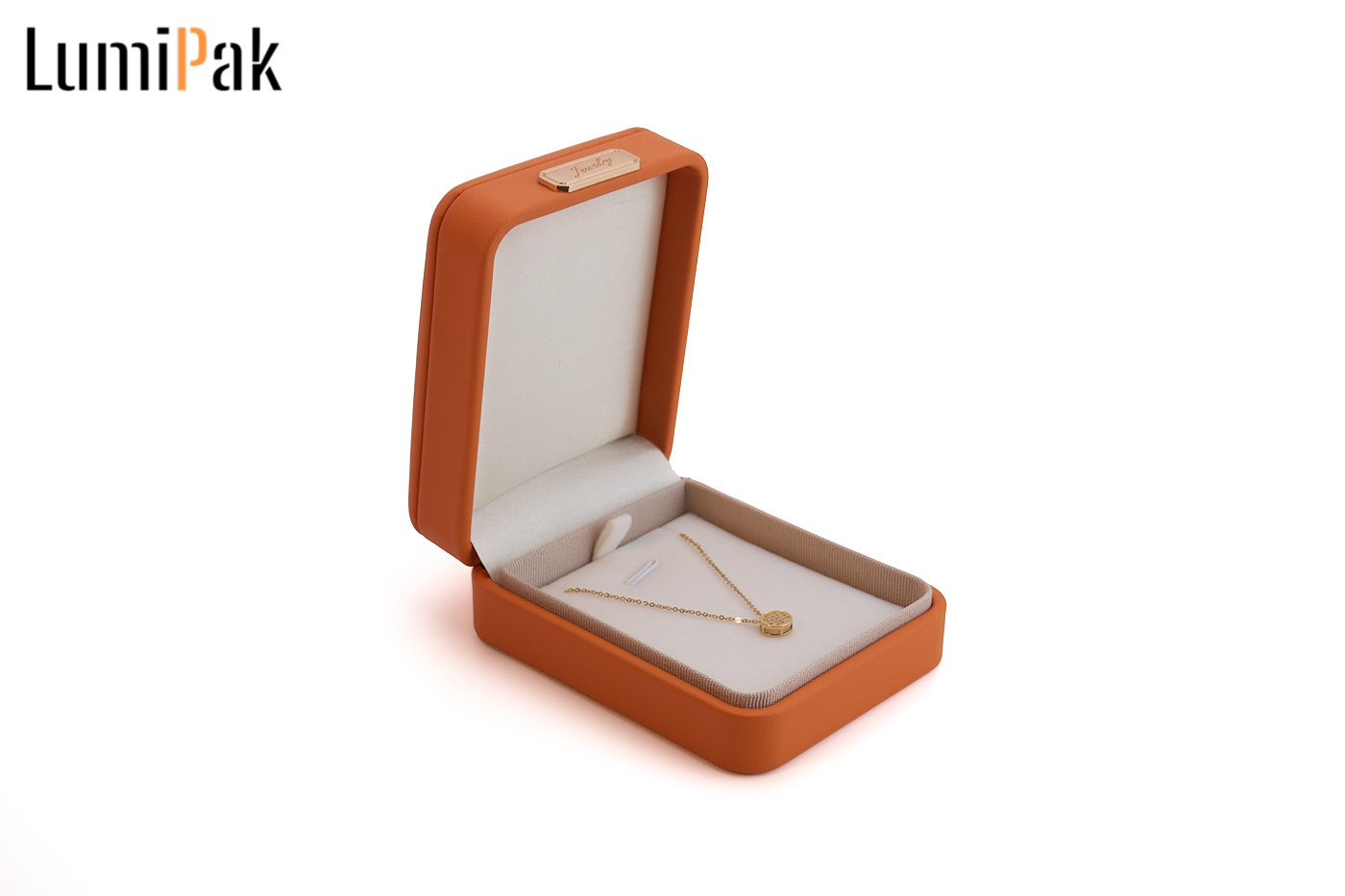 橘色PU金扣圆角项链盒