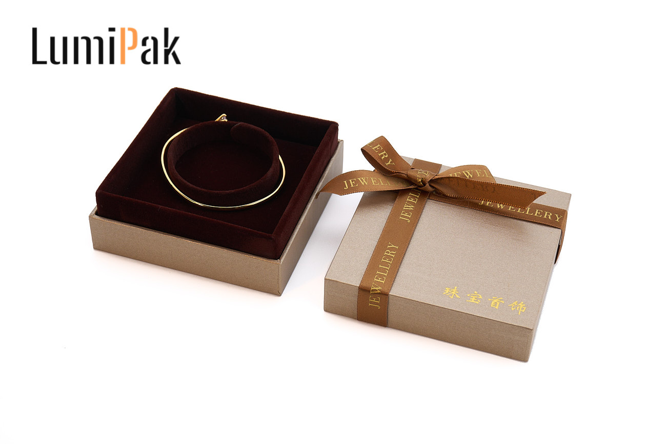 金棕蝴蝶结方形手镯盒