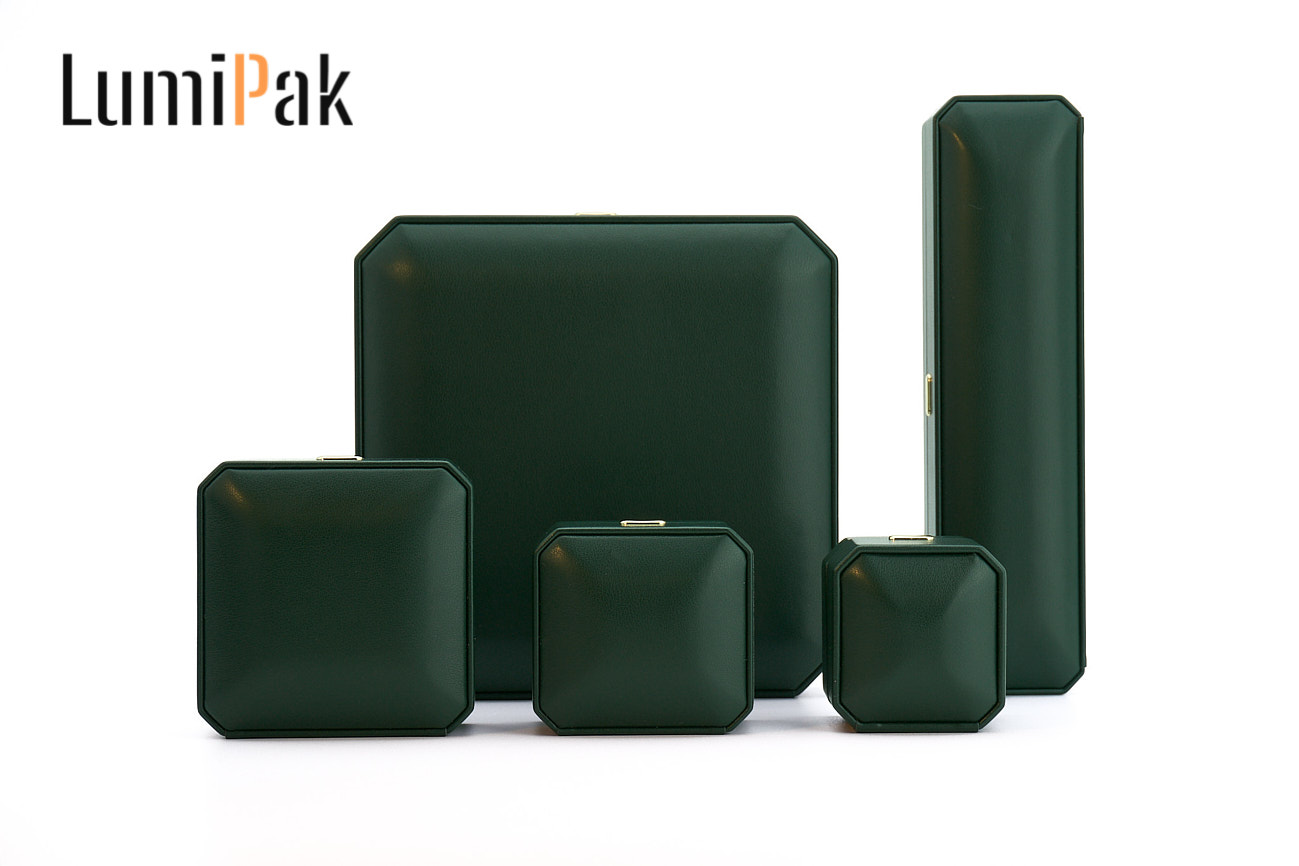 墨绿色PU金扣八角项链盒