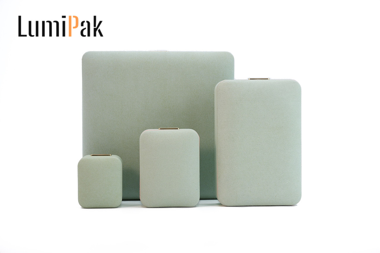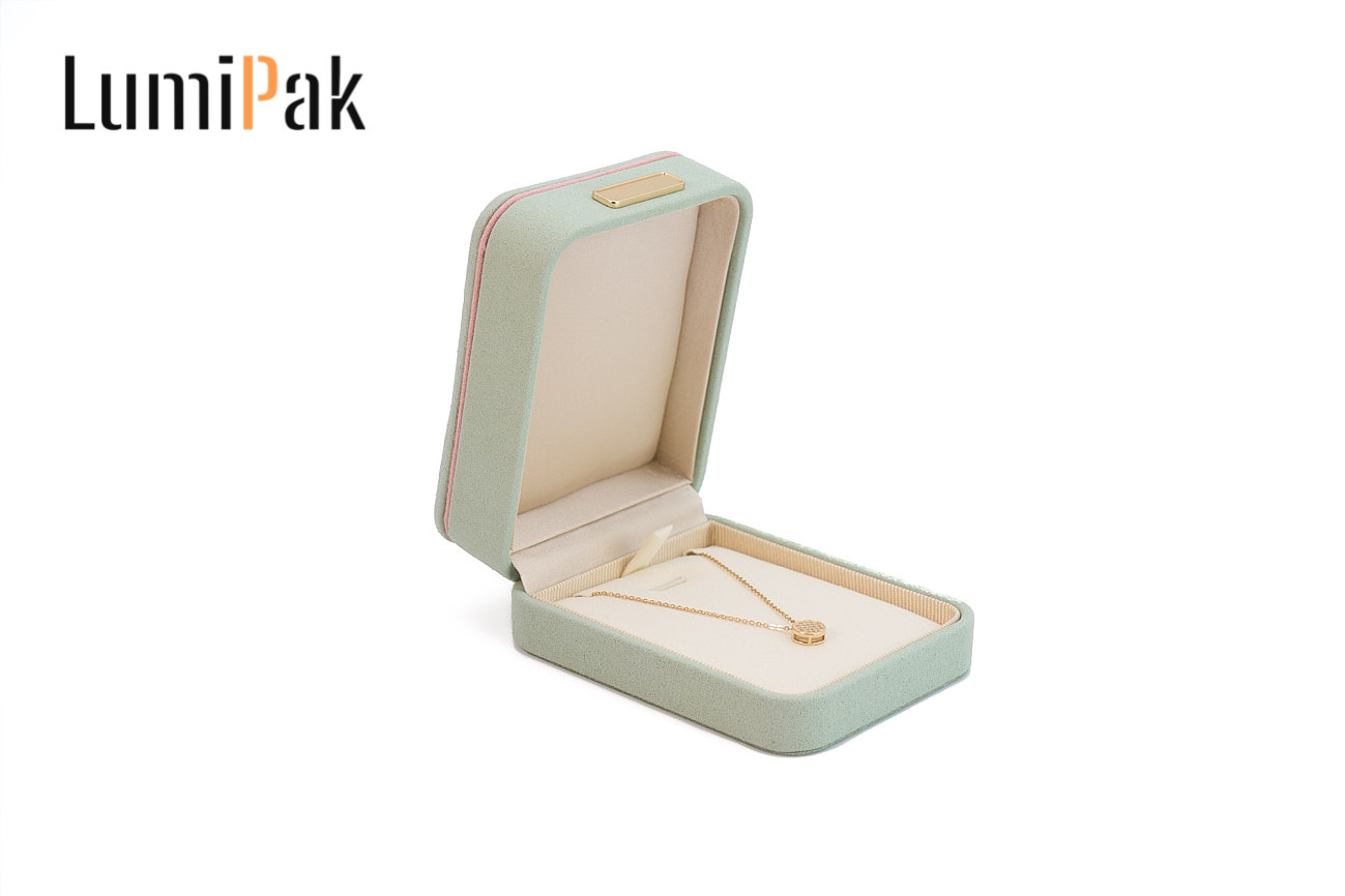 浅绿色金扣绒面圆角吊坠盒