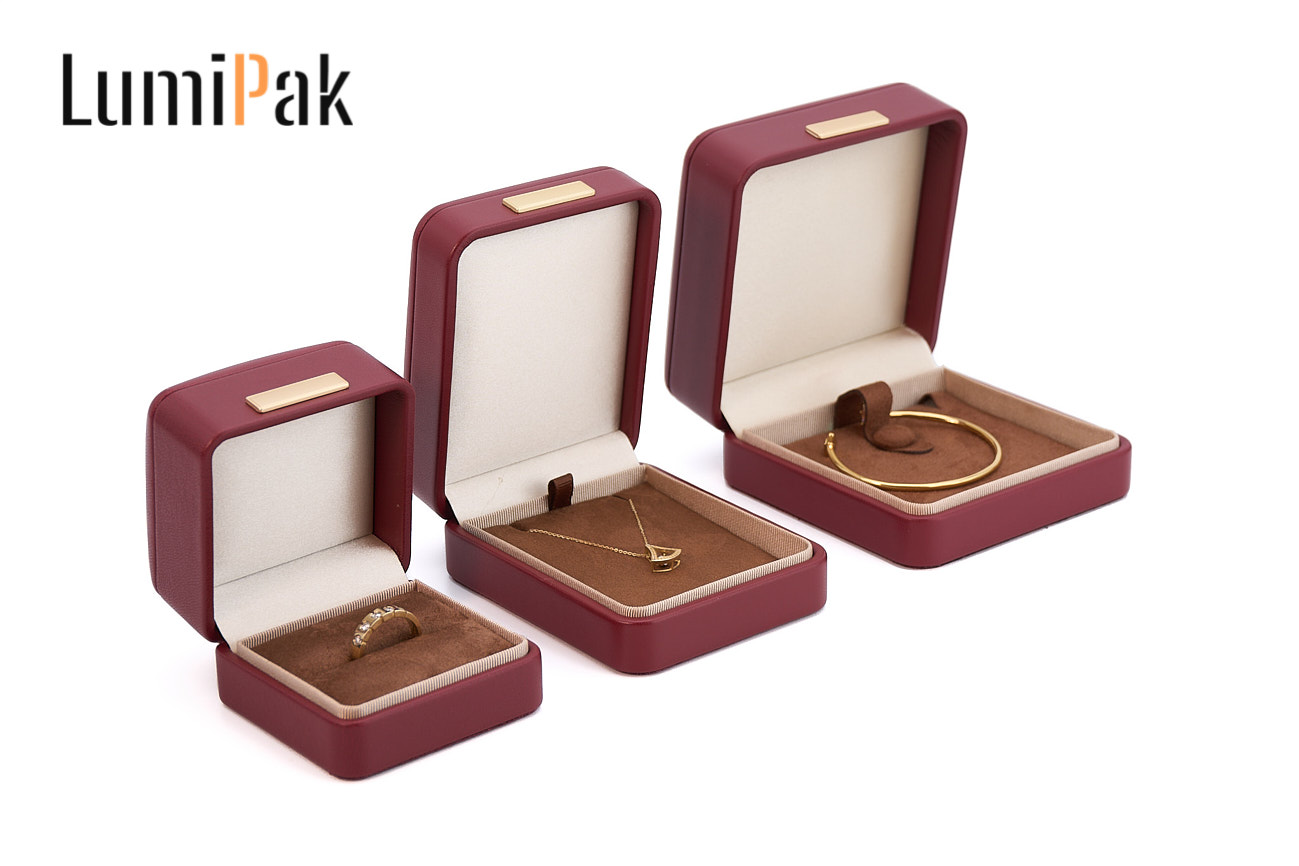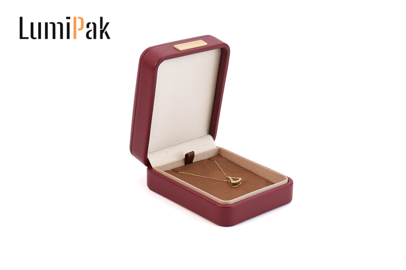 酒红色PU金属扣圆角吊坠盒