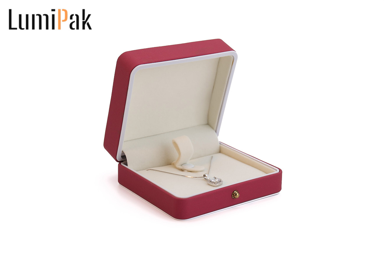 红色白边PU圆角项链盒
