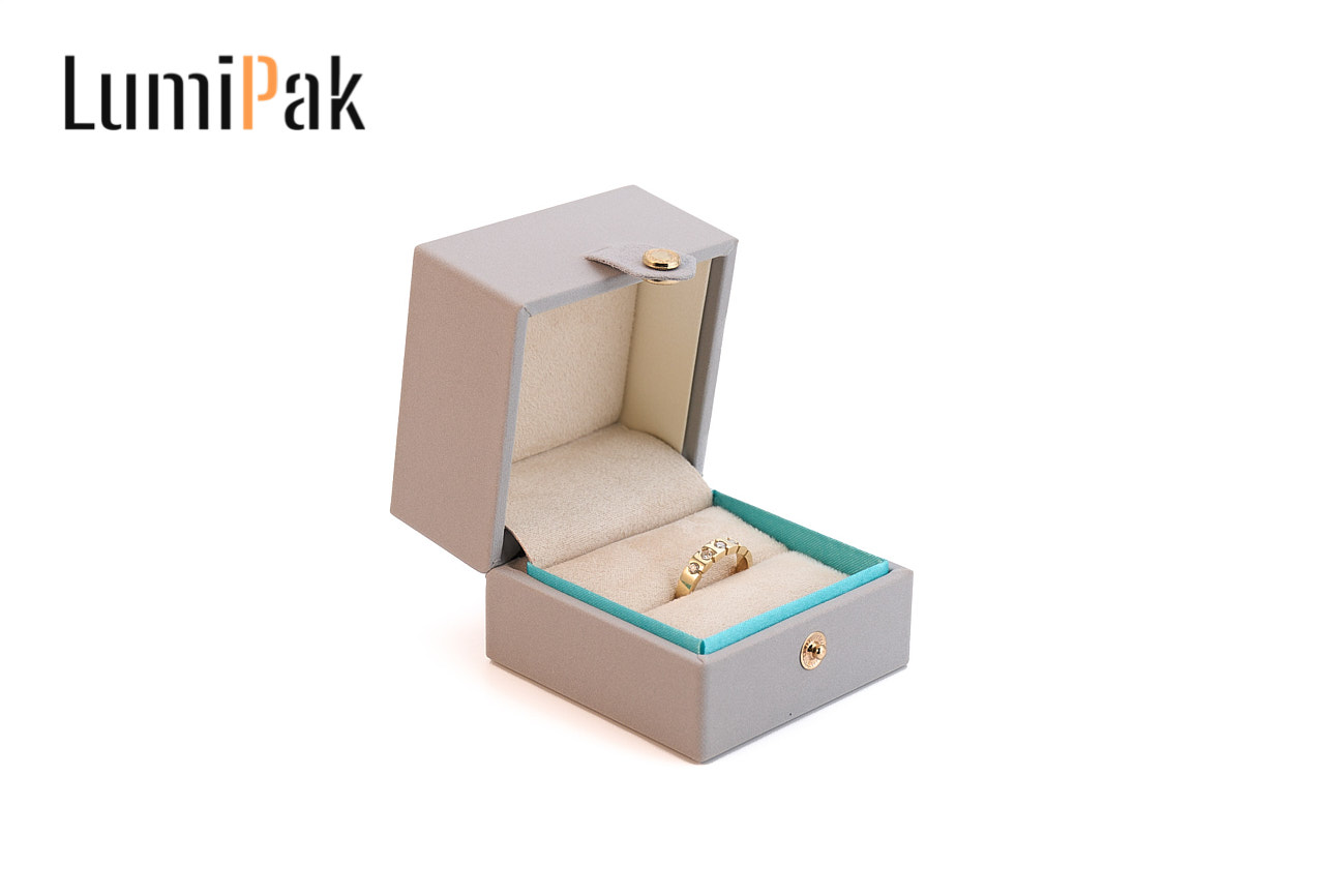 灰色金扣方形戒指盒
