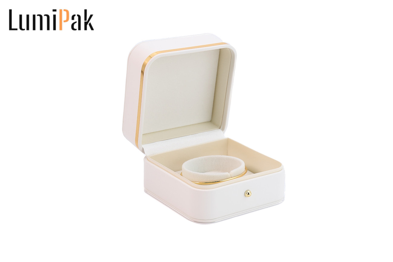 白色金边金扣圆角手镯盒