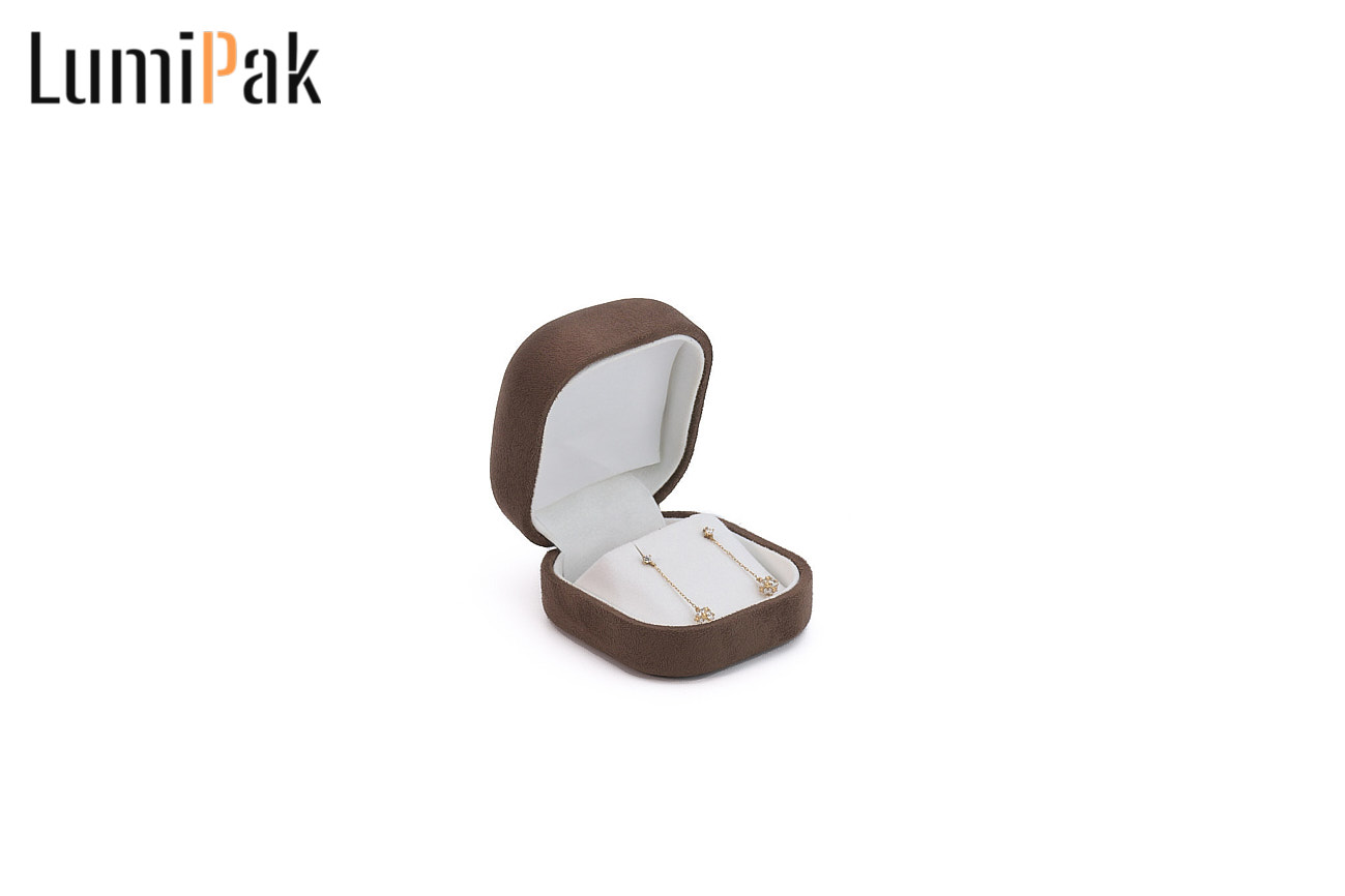 棕色圆角超纤耳坠盒