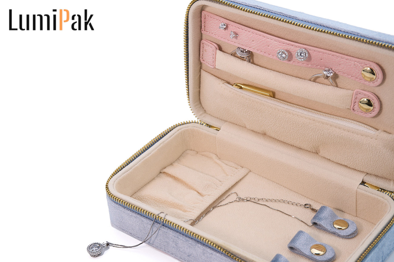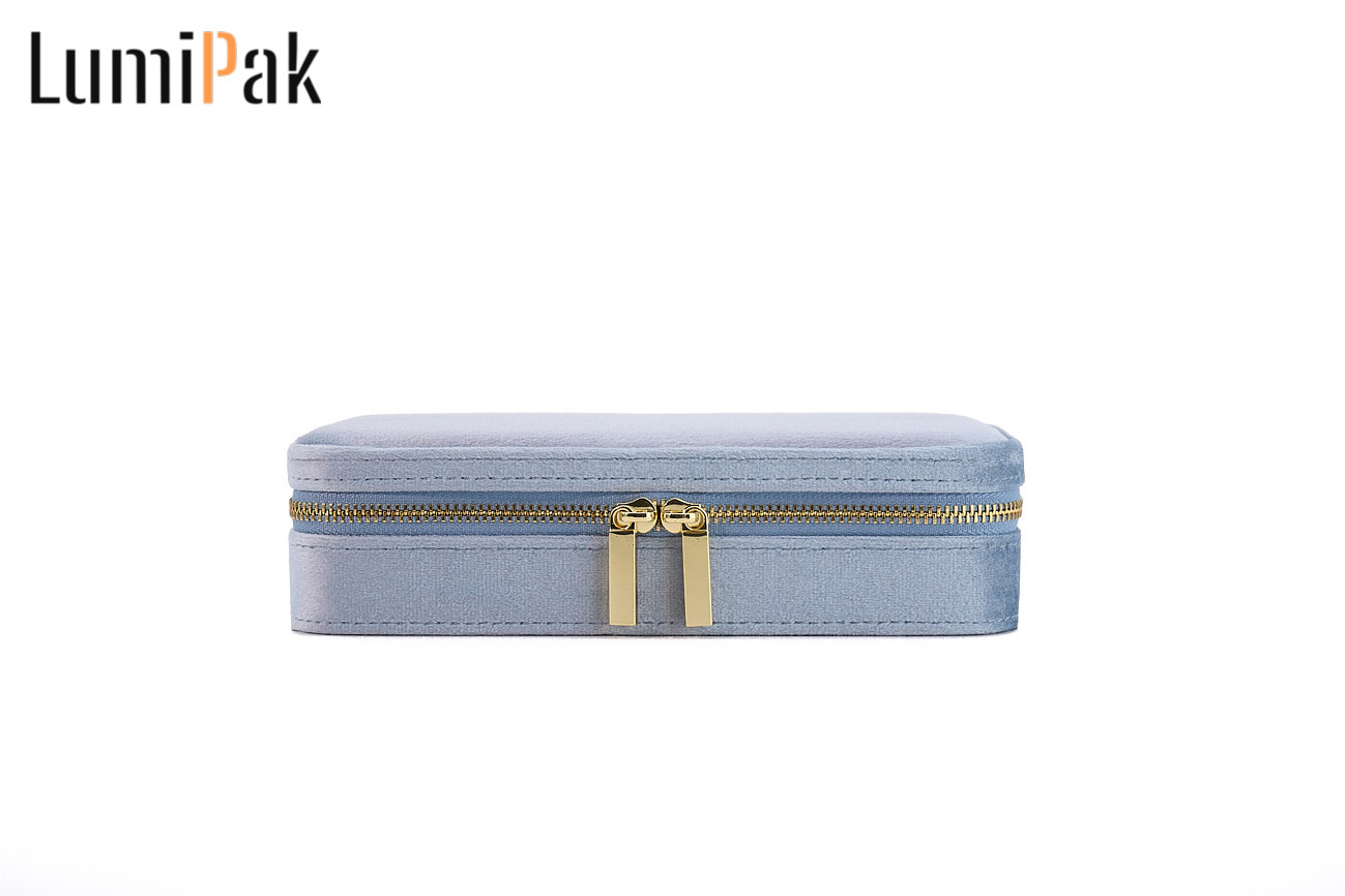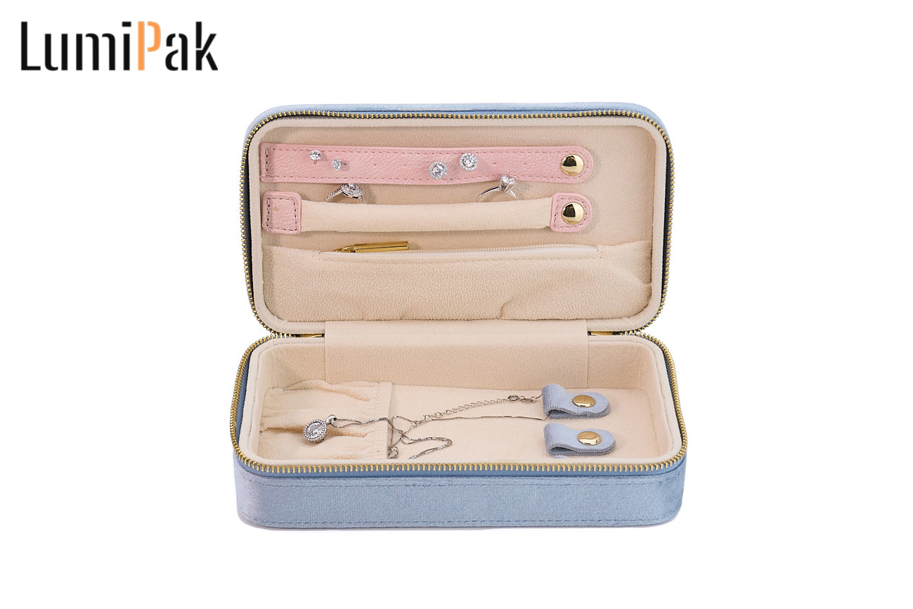 蓝色绒面圆角首饰收纳箱