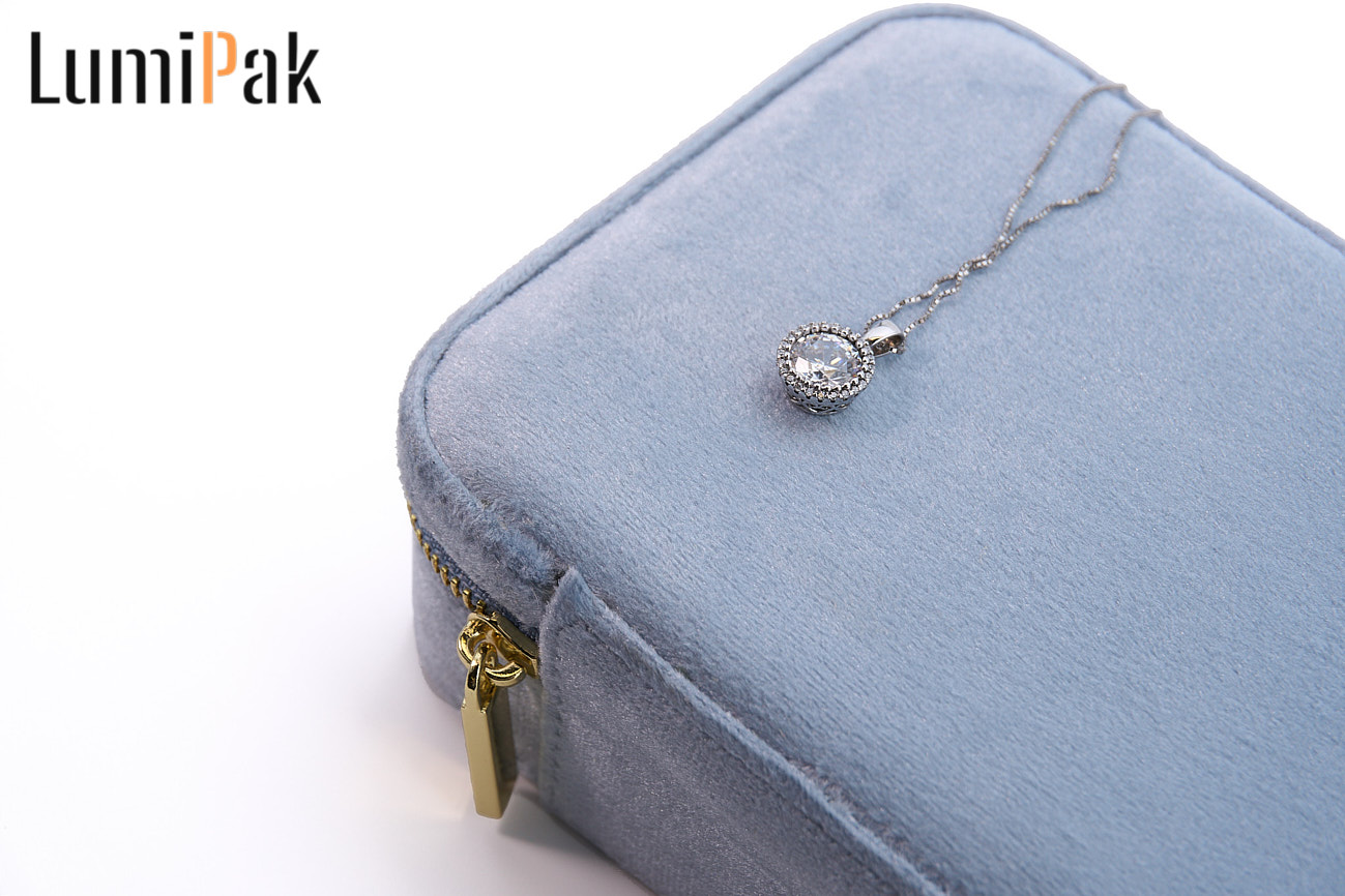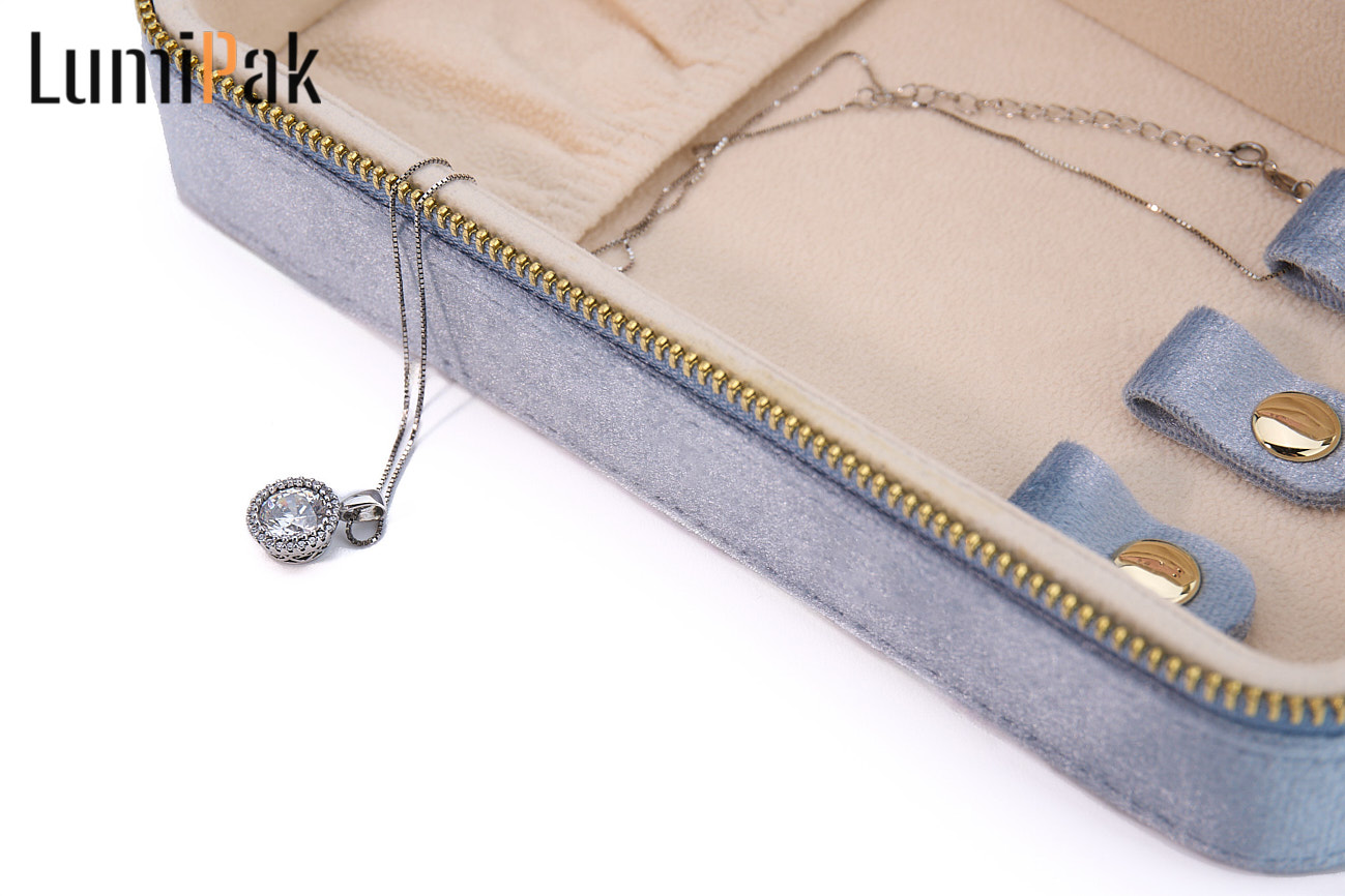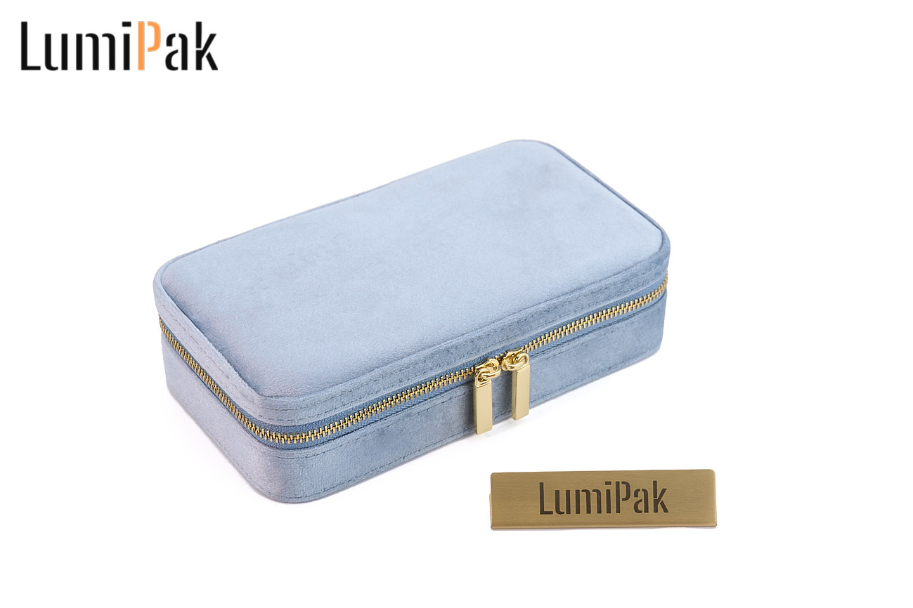 蓝色绒面圆角首饰收纳箱