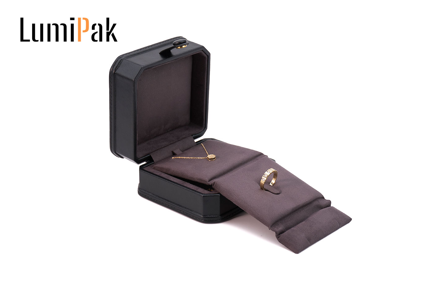 黑色PU按扣八角多功能盒