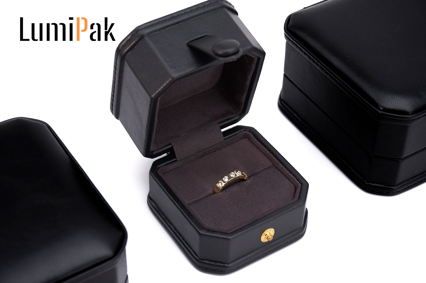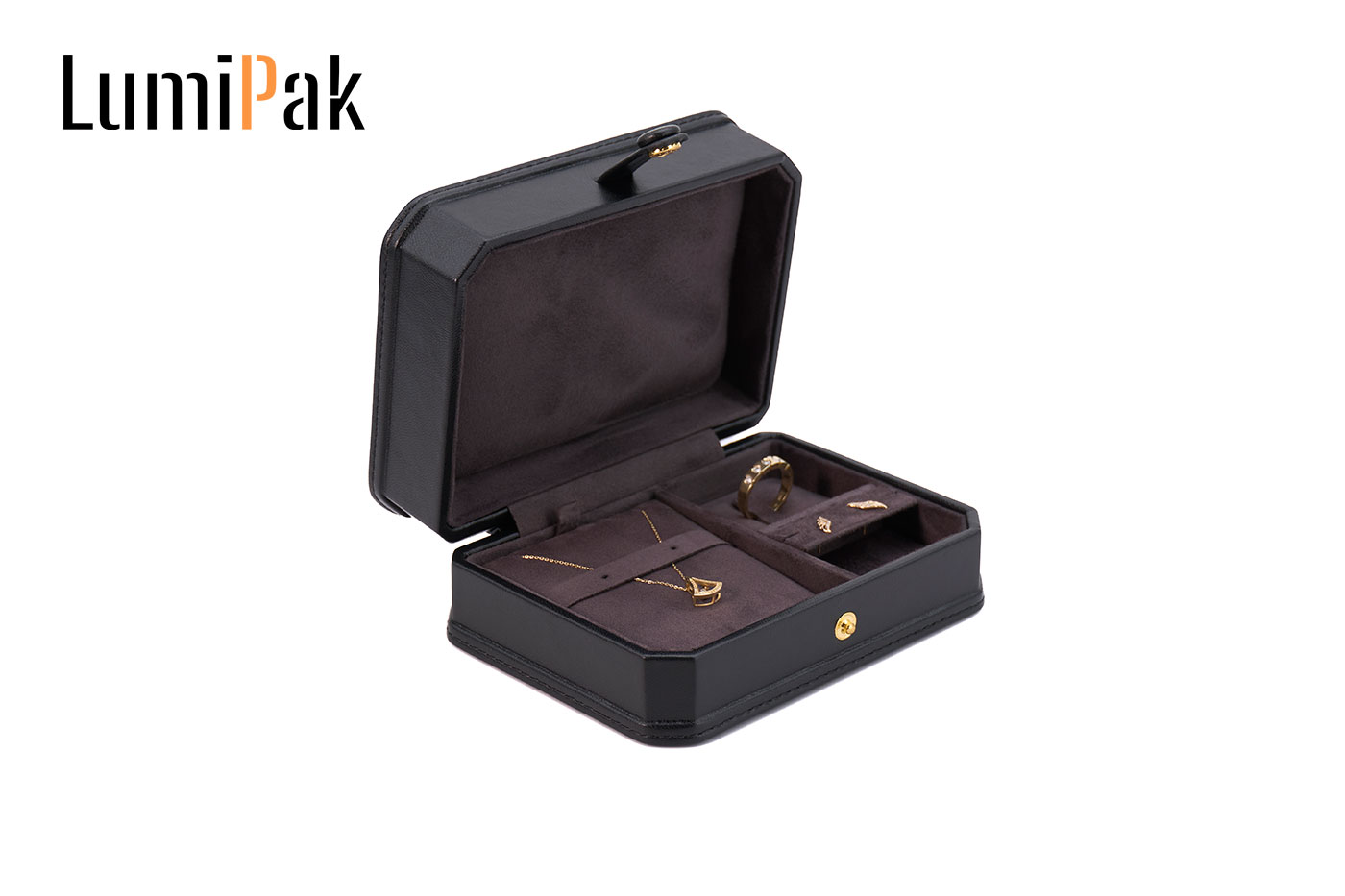黑色PU按扣八角便携首饰收纳盒