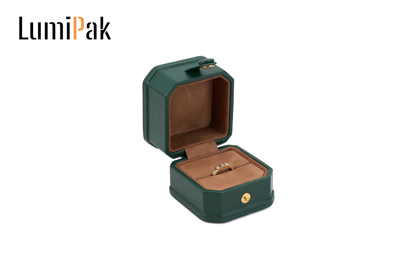 墨绿色PU按扣八角戒指盒
