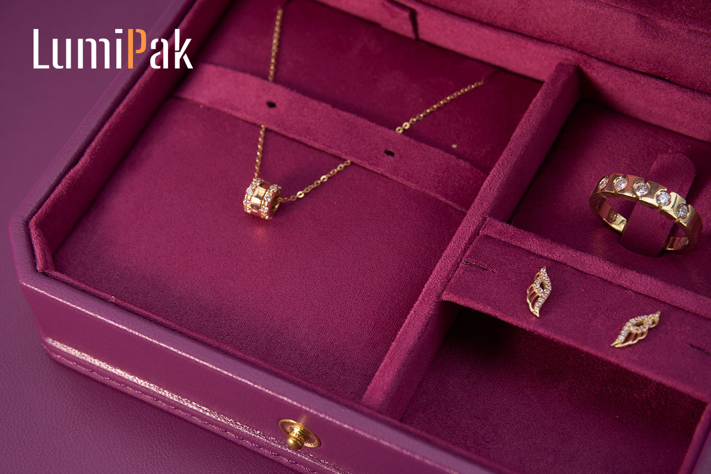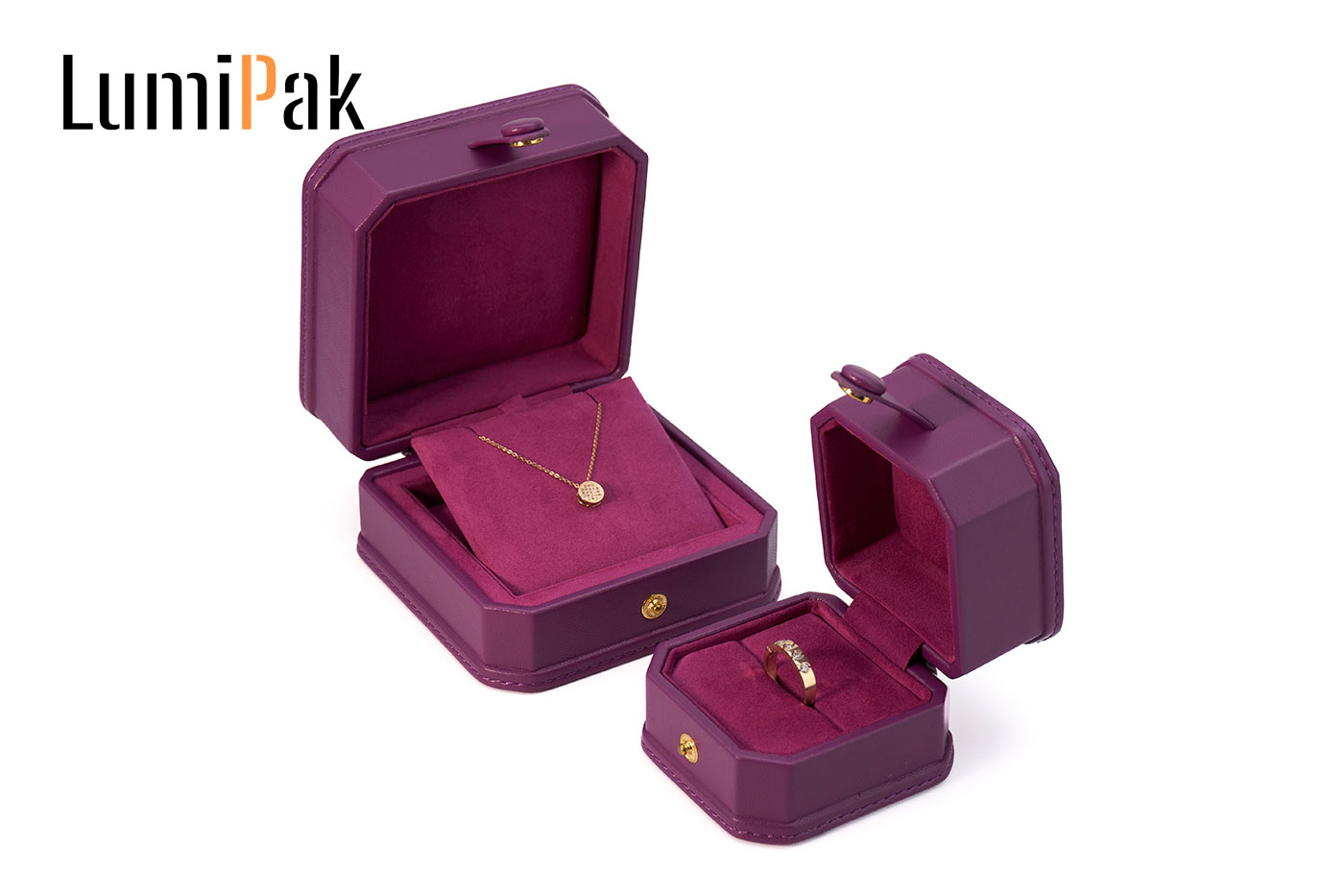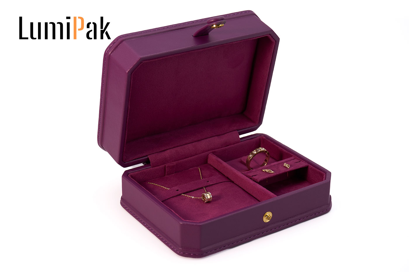 紫色PU按扣八角便携首饰收纳盒