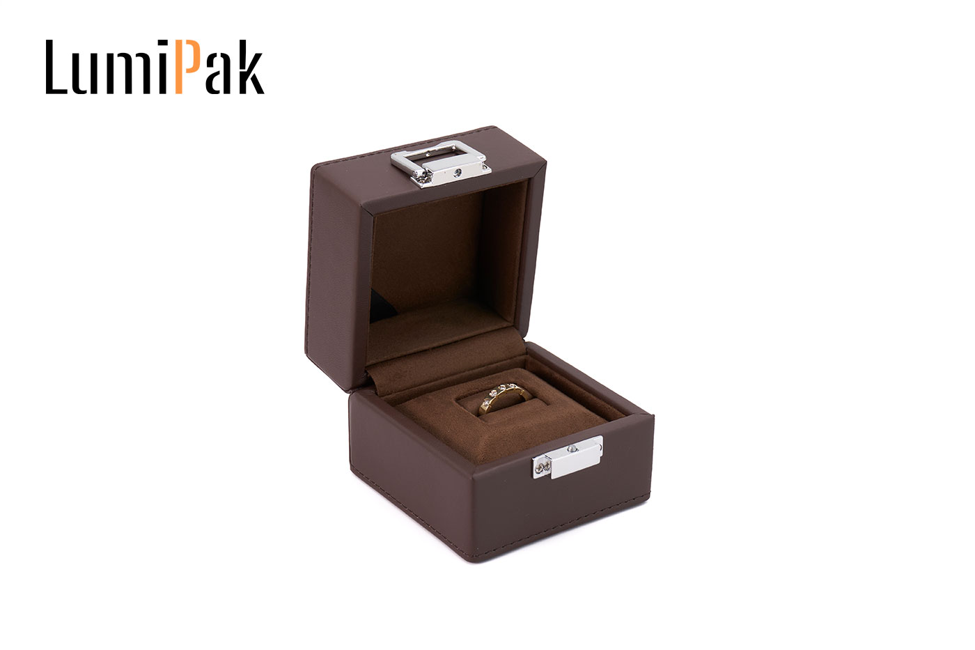 棕色PU银扣方戒指盒