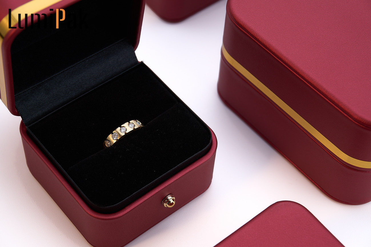 红色金边圆角戒指盒